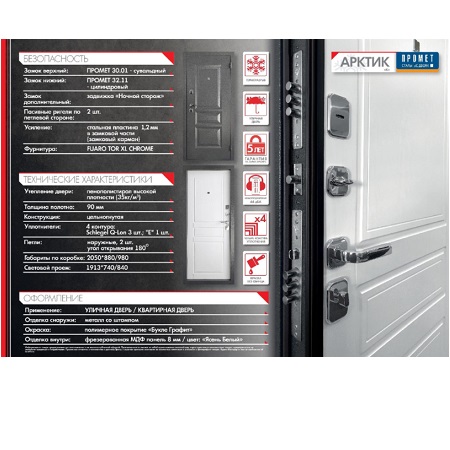 | Защита замков | “Замковый карман” – дополнительный лист металла, толщиной 1.2 мм, в замковой зоне | |